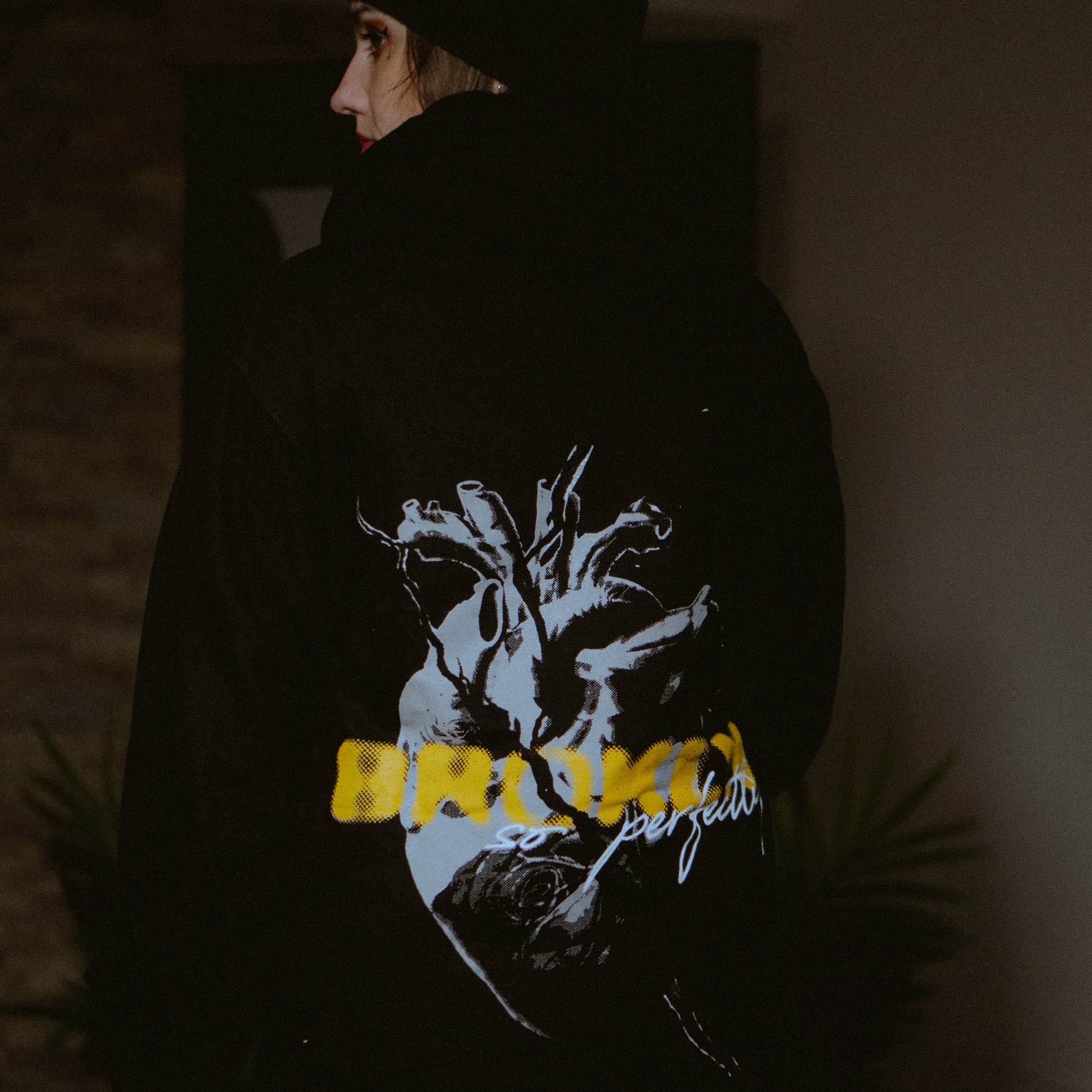 Celebrating the new single "perfectly broken" and the start of a new era with this 100% cotton front and back hoodie. Featuring the brand new Halflives logo on the front; and a "so perfectly broken" heart on the back.